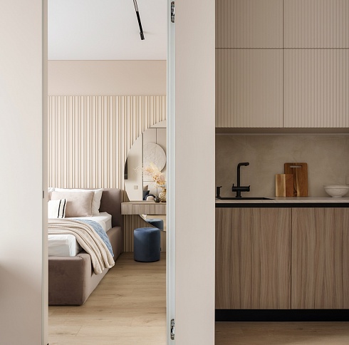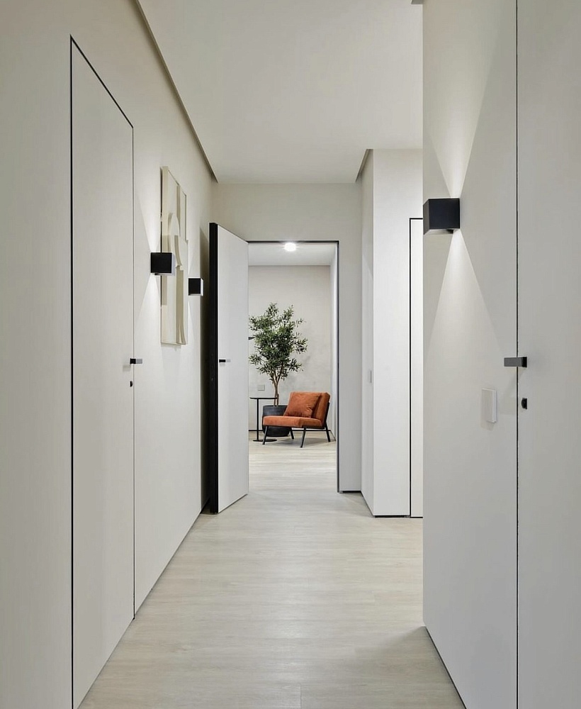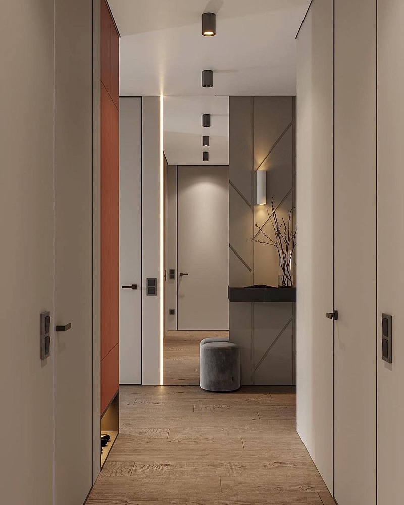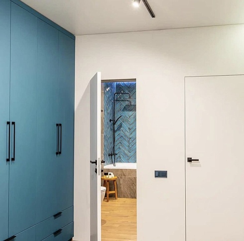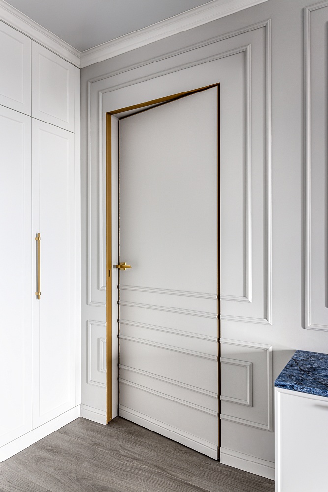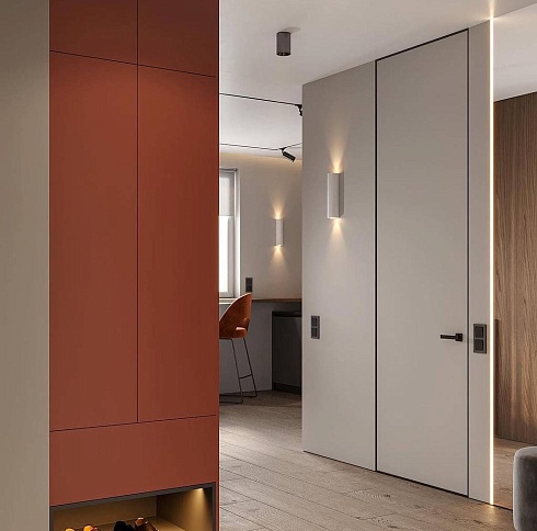 - когда в проекте много дверей, полезно часть из них сделать "невидимыми" - это делает интерьер визуально более "легким", чистым, лаконичным