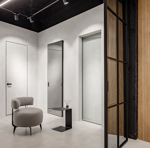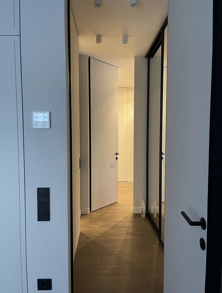 «Наши концепции в дизайне всегда опираются на минимализм и рациональность. Чистые линии и лаконичные формы всегда выстраивают строгую логику в оформлении интерьеров. В своих проектах мы почти всегда используем двери со скрытым монтажом, в сочетании с шпонированными панелями, с зеркалами или просто под покраску они помогают нам организовать ту самую притягательность минимализма.»Видео о скрытых дверях