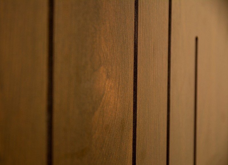 — панель изготовлена из влагостойкого мдф толщиной от 12 до 24мм, поверх которого наклеен шпон. Шпон придает панелям красивый внешний вид и текстуру, а также повышает их прочность и долговечность.Одним из главных преимуществ шпонированных панелей является их экологичность.